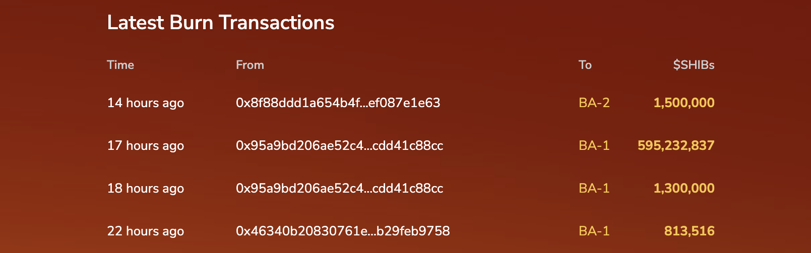 Shiba Inu topluluğu 2021 yılının sonlarından bu yana token yakımlarını desteklemek için paylaşımlarda bulunuyor. Bugüne kadar farklı sektörlerden şirketlerin düzenlediği etkinliklerde milyarlarca SHIB yakımı gerçekleşti.