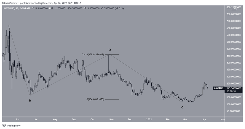 En muhtemel dalga sayımı analizine göre AAVE, A-B-C şeklindeki bir düzeltmeyi tamamladı. Bu düzeltme ise fiyat rekoruna imza atıldıktan sonra başlamıştı. Ayrıca A ve C dalgaları, A-B-C düzeltmelerinde yaygın olarak görülen 1:0.618 oranını veriyordu.