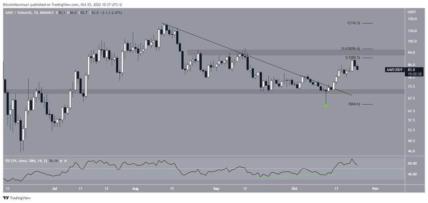 Ardından AAVE direnç çizgisinden çıkış gerçekleştirdi ve düzeltmenin tamamlanmış olabileceğini gösterdi. Bu çıkış ve ardından gerçekleşen yükselişle 23 Ekim’de 90,1 dolara kadar ulaşıldı, ancak buradan red yedi. Binance CEO’su CZ ve FTX CEO’su SBF arasında geçen dolaylı DeFi tartışması bu projelerin fiyatlarında etkiler yarattı.