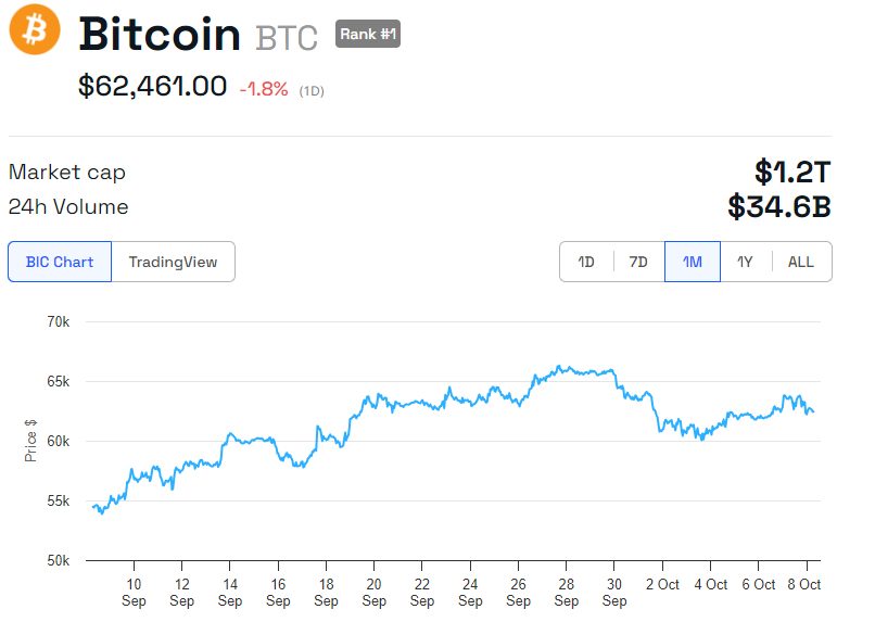 Yazının yazıldığı sırada, BeInCrypto verilerine göre BTC’nin fiyatı 62.461 dolar, son 24 saatte yaklaşık %2 düşüş gösterdi.
