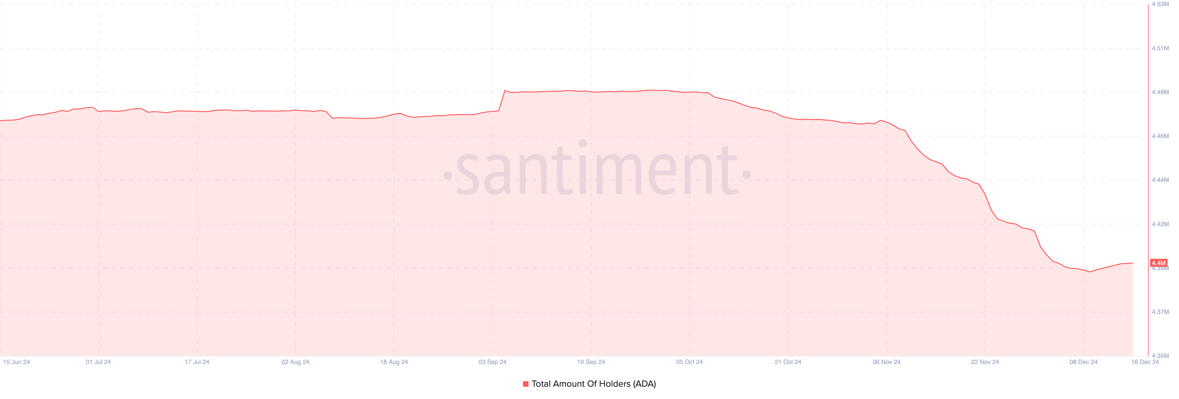 Ayrıca, artan talebi işaret eder, bu da fiyat artışına yol açabilir. Öte yandan, sahip sayısındaki bir düşüş bunun aksini gösterir. Kasım ayında, Cardano sahiplerinin sayısı yaklaşık 4,47 milyondu.