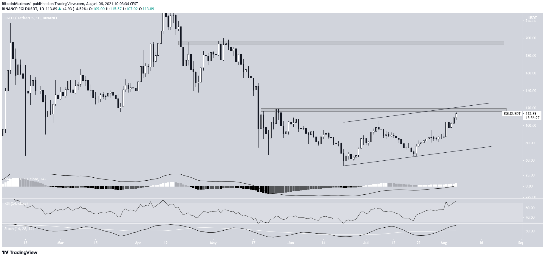 Elrond (EGLD) 22 Haziran’da artış kaydetmeye başladı ve 20 Temmuz’da bir yüksek dip oluşturdu.