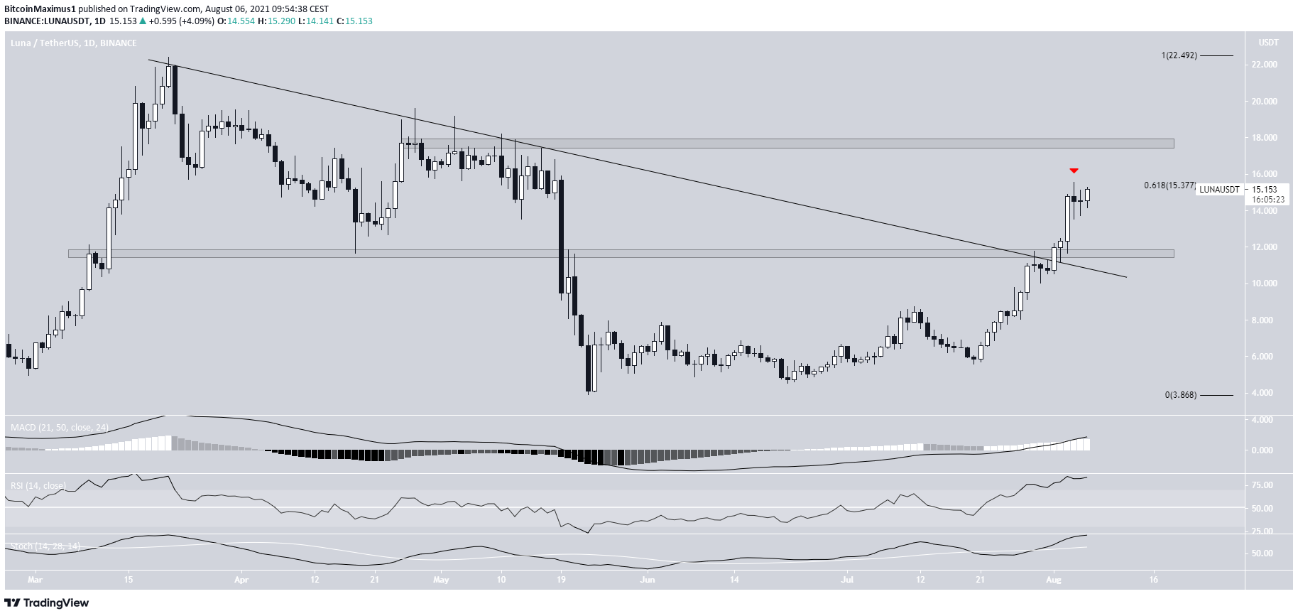 Terra (LUNA) 20 Temmuz tarihinde hızlı bir oranda artış kaydetmeye başladı. Böylece 1 Ağustos’ta alçalan direnç çizgisinden çıkış gerçekleştiren altcoin, 2 Ağustos’ta 11,50 dolardaki yatay bölgede tutunmayı başardı.