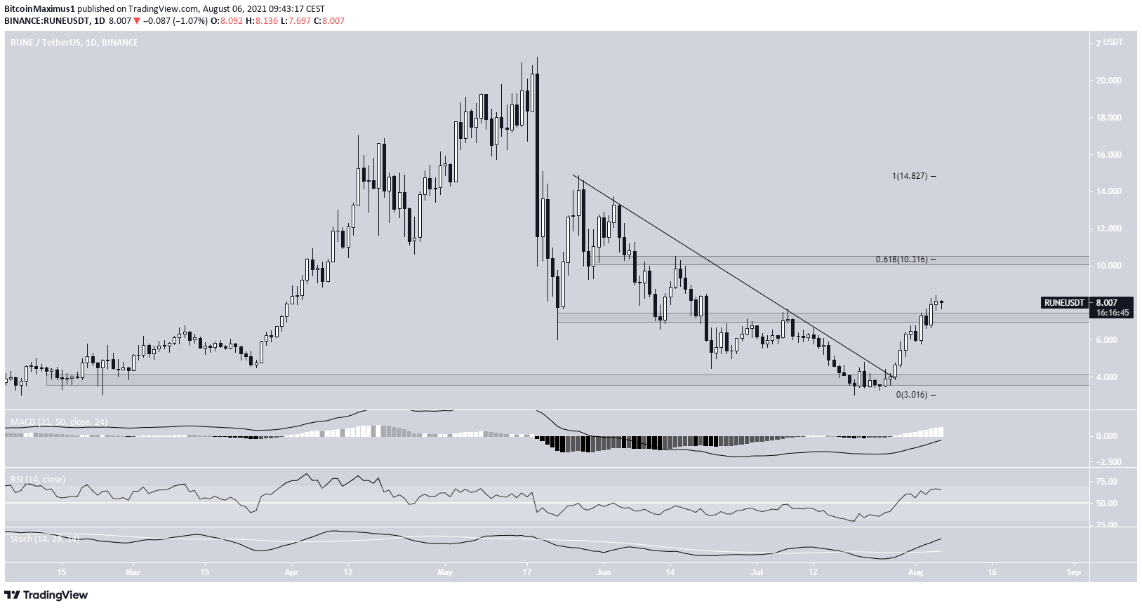 THORChain (RUNE) 22 Temmuz tarihinde 2,80 dolardaki yatay destek bölgesinden sıçradı. Sıçrama güç kazandı ve 28 Temmuz’da alçalan direnç çizgisinden bir çıkış gerçekleşti.