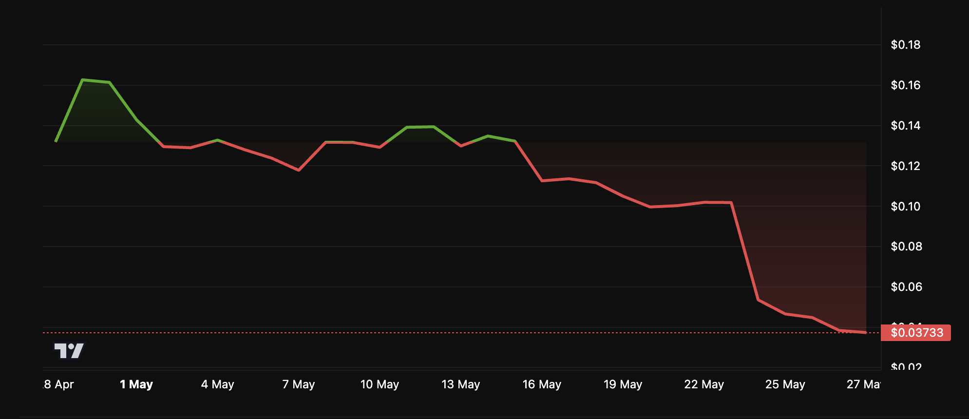Ayrıca trading hacmi %13 azaldı ve bu da yatırımcı ilgisinin kaybolduğunu gösteriyor. Yazı yazıldığı sırada, fiyat hafifçe toparlanarak 0,038 Dolar’a yükseldi.