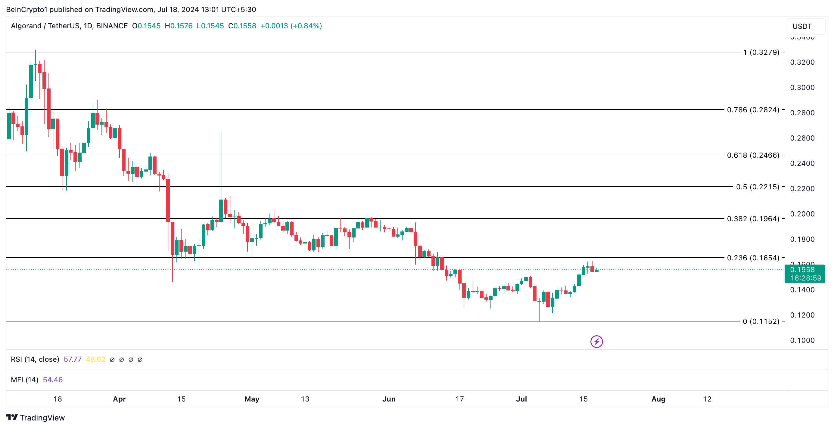 ALGO’nun değeri şu anda 0,15 dolardan işlem görüyor ve son yedi günde yüzde 12 arttı.