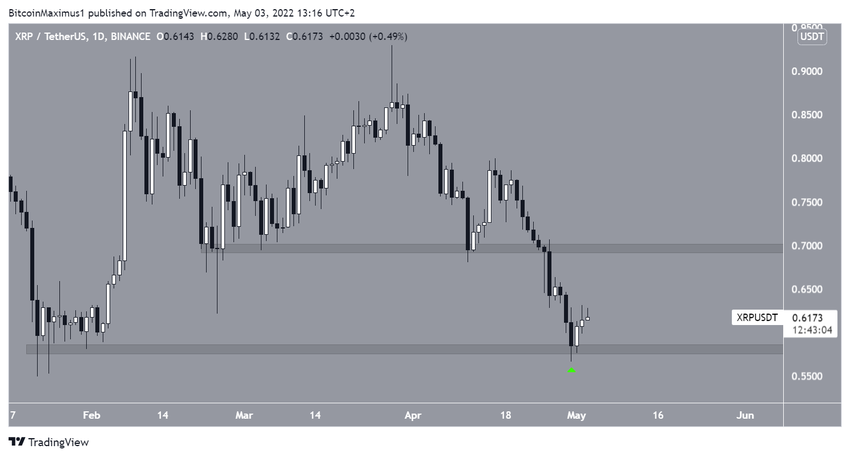 Ripple (XRP), BTC’ye benzer şekilde, 28 Mart’ta değer kaybetmeye başladı. Böylece 30 Nisan’da 0,566 dolar seviyesinde bir dip oluştu.
