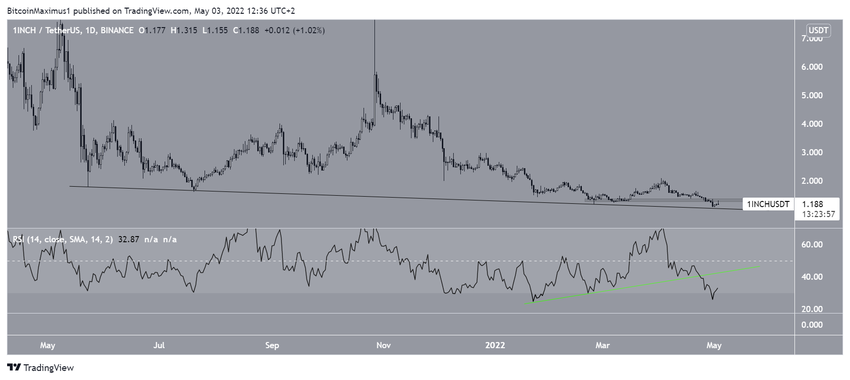 1inch Network (1INCH) 23 Mayıs’ta alçalan bir destek çizgisini takip etmeye ve düşüş sergilemeye başladı. Böylece altcoin, 25 Nisan’da 1,30 dolardaki yatay destek bölgesinden kırılım gerçekleştirdi. Ayrıca 30 Nisan’da 1,07 dolar seviyesinde bir dip oluştu.