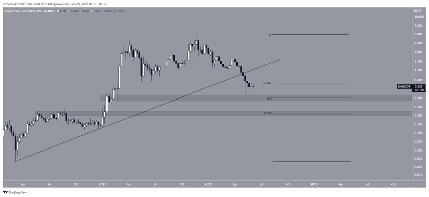 Enjin (ENJ) 2020 yılı Mart ayında dip oluşturduktan sonra yükselen bir destek çizgisini takip etmeye başladı. Böylece altcoin, 2021 yılı Kasım ayında tüm zamanların en yüksek seviyesi olan 4,84 dolara ulaştı.