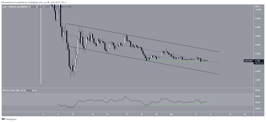Project Galaxy (GAL) 12 Mayıs’ta 2,16 dolar seviyesinde dip oluşturduktan sonra keskin bir sıçrama gerçekleştirdi. Bunun sonucunda, 13 Mayıs’ta 8,18 dolar seviyesinde tepe meydana geldi. Ancak altcoin, tepe seviyeye ulaştıktan sonra alçalan bir paralel kanal içinde değer kaybetmeye başladı.
