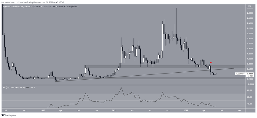 Algorand (ALGO) 1 yılı aşkın süredir destek görevi gören 0,70 dolar bölgesinin altına geriledi. Ayrıca altcoin, bu esnada yükselen paralel kanaldan kırılım gerçekleştirdi. Haftalık grafik ölçeğindeki RSI ise 50 seviyesini kaybetti.