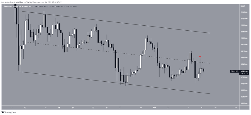 Ethereum (ETH) 12 Mayıs’tan bu yana alçalan bir paralel kanal içinde hareket ediyor. Bunun yanı sıra, 27 Mayıs’ta 1.703 dolar seviyesinde bir dip meydana geldi. Ayrıca altcoin, şu anda kanalın orta çizgisinde bulunan dirençle karşılaştı (kırmızı ok).