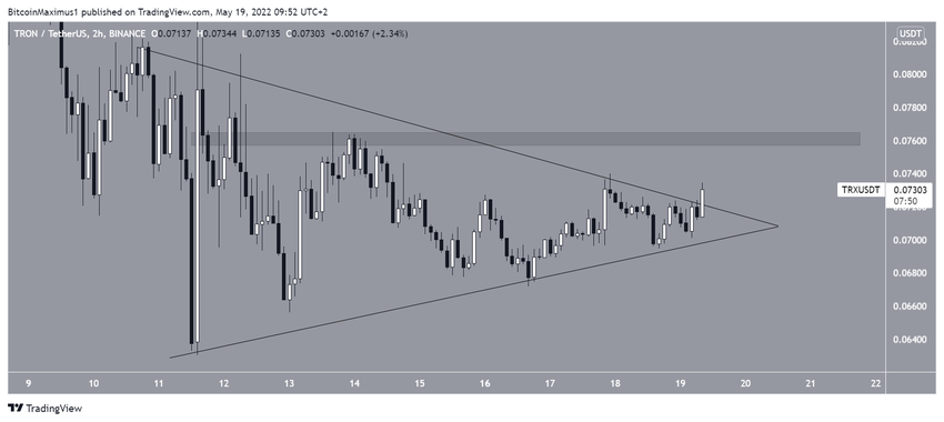 TRON (TRX) 11 Mayıs’ta simetrik bir üçgen formasyonu içinde hareket etmeye başladı. Diğer yandan simetrik üçgen formasyonları, nötr formasyonlar olarak değerlendiriliyor.