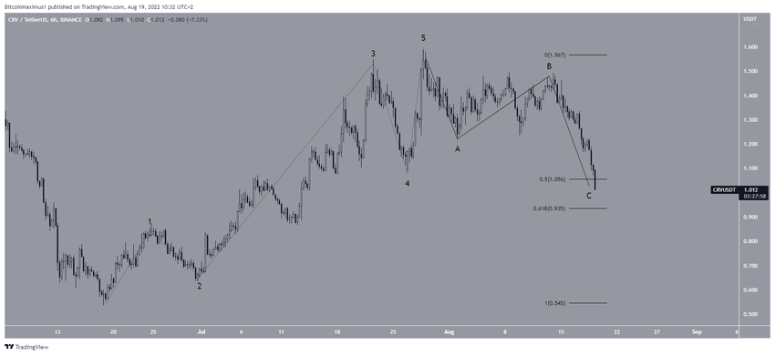 O günden bu yana, bu altcoin A-B-C düzeltme yapısı gerçekleştiriyor. Bu durumda CRV, C dalgasının sonuna yaklaşıyor. Bu dalganın, 0.5-0.618 Fib düzeltme destek seviyeleri olan 0,93 dolar ile 1,05 dolar arasında bitmesi beklenebilir.