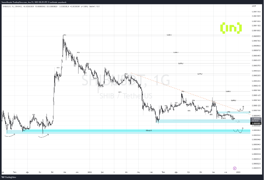 Dogecoin katili olarak anılan Shiba Inu aşağı yönlü hareketini sürdürüyor. BeInCrypto analisti Yağmur Bayoğlu, popüler altcoin için kritik destek ve direnç noktalarına işaret etti. Bayoğlu, şu anda 0,000008271 dolardan işlem gören SHIB’in 0,00001016 doları kırmadıkça günlük trendi koruyacağını ifade etti. Deneyimli analist 0,000007990 dolarda yer alan desteğin korunmaması durumunda daha fazla geri çekilme görüleceğinin altını çizdi: