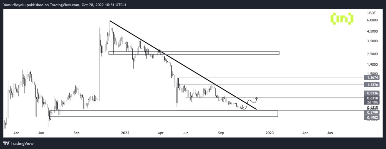 BeInCrypto Türkiye analisti Yağmur Bayoğlu’na göre Metaverse projesi Decentraland için ilk kritik nokta 0,50 dolar seviyesinin korunması. Deneyimli analiste göre bu seviye korunursa, popüler altcoin 1 dolar seviyesini aşan bir yükseliş başlatabilir: