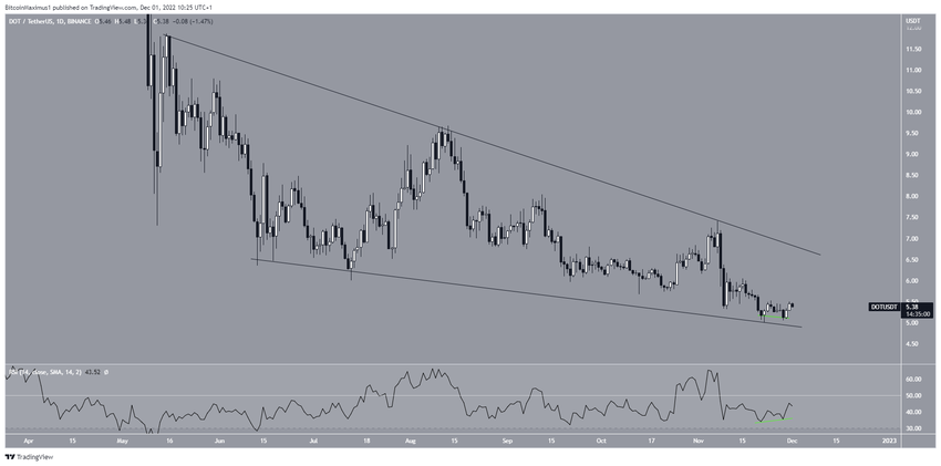 Polkadot fiyatı 22 Kasım’da takozun alt çizgisinden sıçrama gerçekleştirdi. Ardından günlük RSI, pozitif uyumsuzluk üretti ve yükseliş başladı.