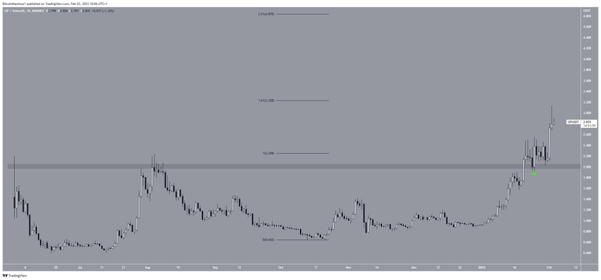 SponsoredOP, 2 Şubat’ta 3,13 dolara ulaşarak rekor kırdı. Bu tepe noktası, 3,23 dolarda yer alan 1.61 harici Fib düzeltme direncine çok yakındı. Bu seviye geçilirse, popüler altcoin 4,83 dolara doğru hızlı bir yükseliş gerçekleştirebilir.