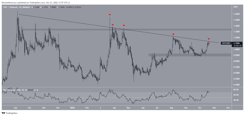 TWT fiyatı, Eylül 2021’den bu yana alçalan direnç çizgisi altında değer kaybediyor.