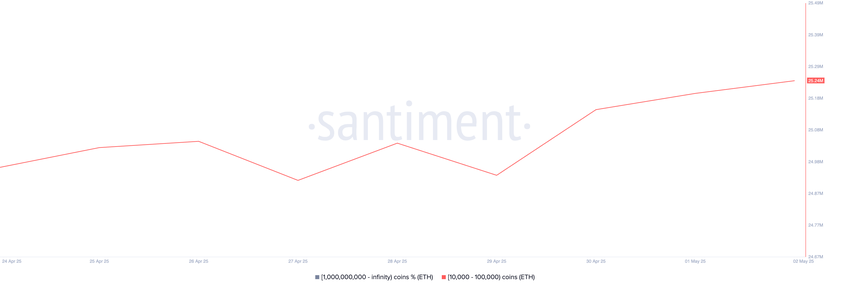 Son piyasa rallisi sırasında, ETH son yedi günde %3’lük mütevazı bir fiyat artışı kaydetti ve bu artış, istikrarlı balina birikimiyle desteklendi.