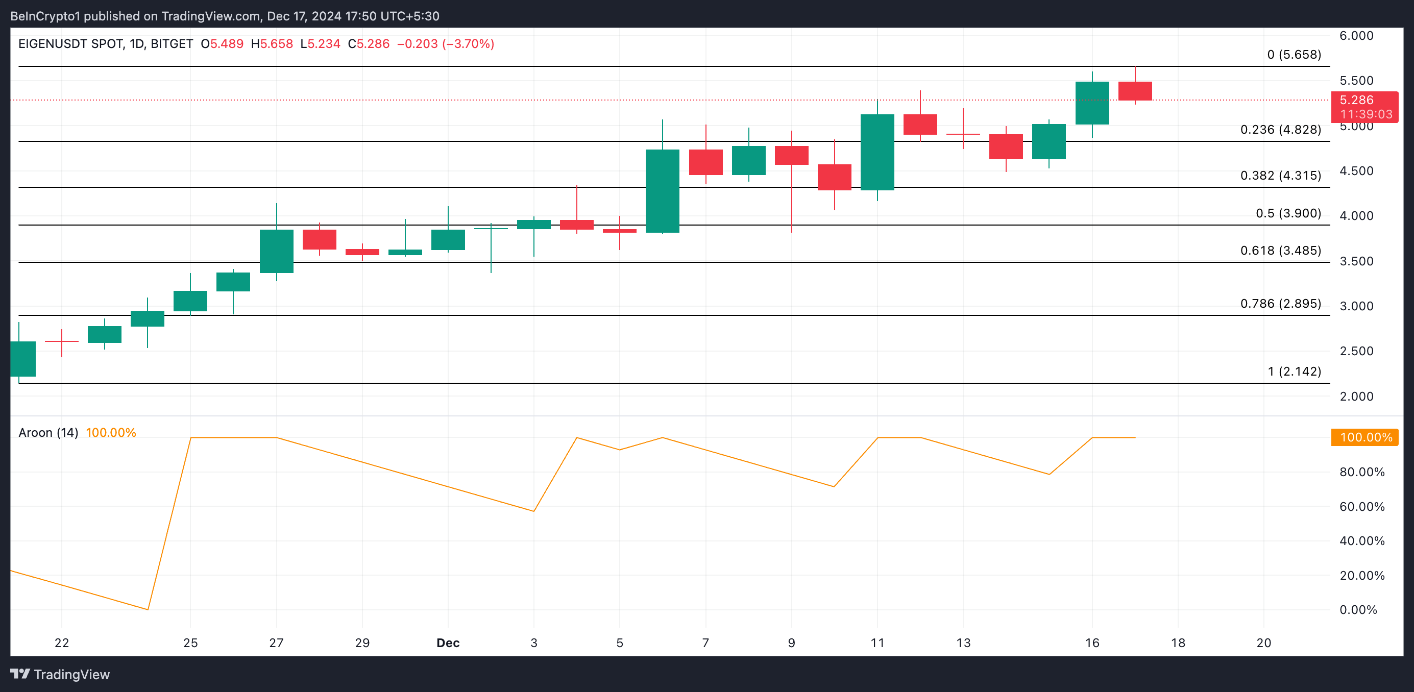EIGEN alıcıları kontrolü elinde tutarsa, fiyatını tüm zamanların en yüksek seviyesine ve ötesine taşıyabilirler. Ancak, yükseliş baskısındaki bir azalma, token’ın fiyatının 4,82 dolara düşmesine neden olabilir.