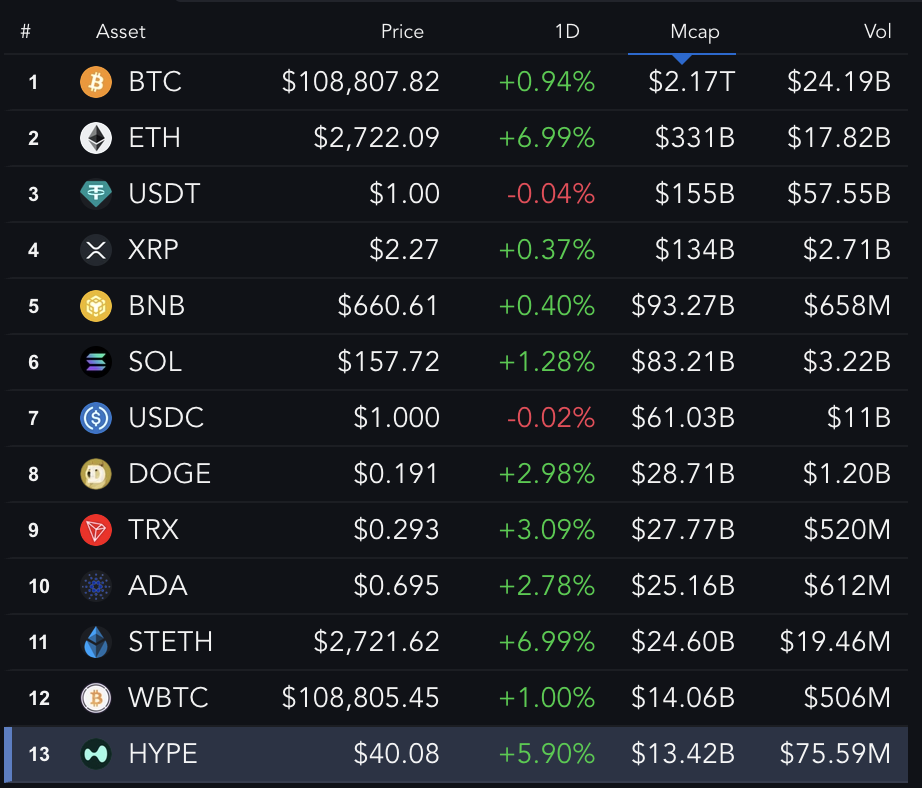 Stablecoin’ler ve wrapped token’lar hariç tutulursa, HYPE piyasa değeri açısından ilk 10 kripto para arasına girdi diyebiliriz. Şu anda HYPE piyasa değeri 13,4 milyar Dolar’a ulaşmış durumda.