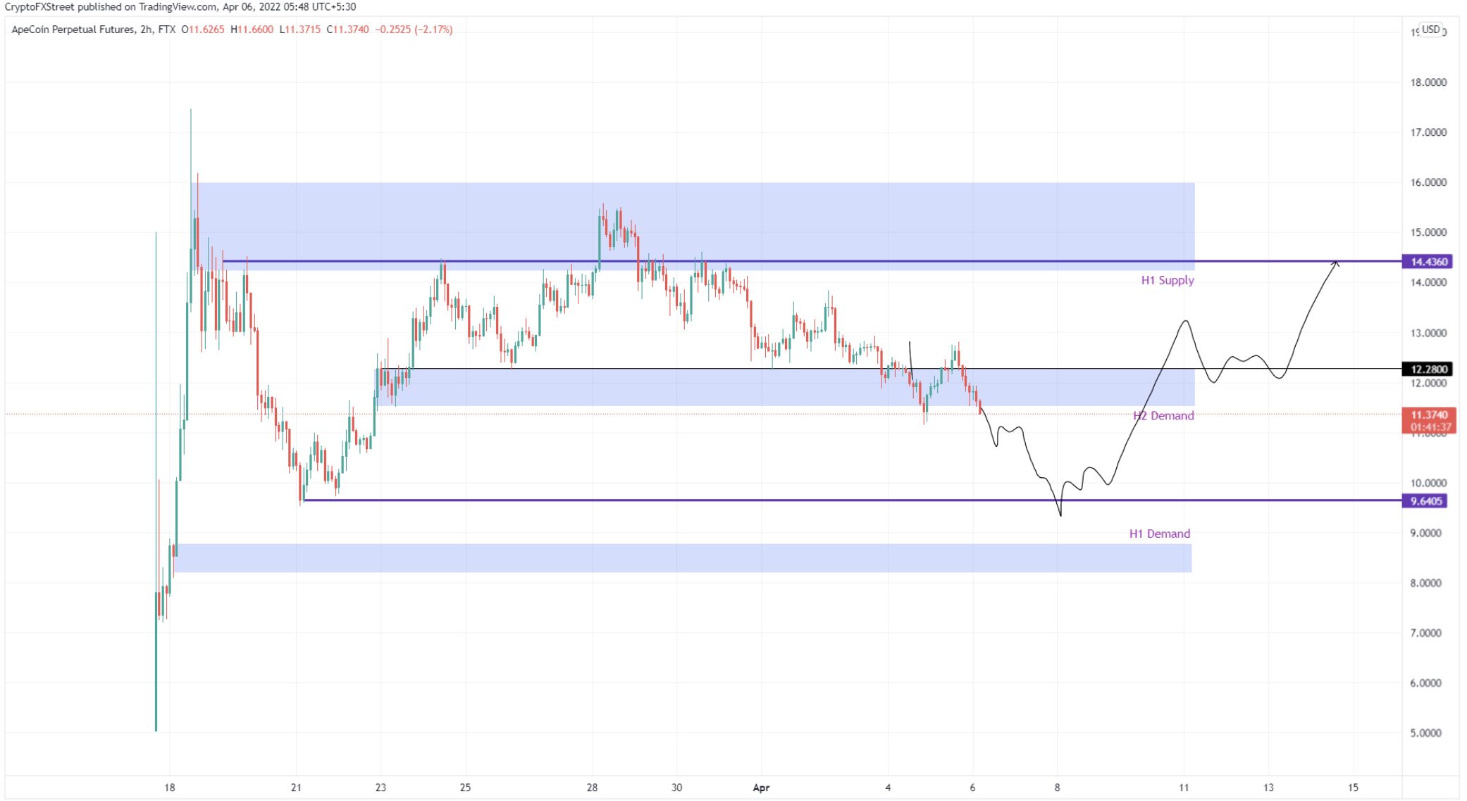 “ApeCoin fiyatı, 11,52 dolar ile 12,26 dolar talep bölgesini kırarak daha fazla düşüşe işaret ediyor. 12,26 doların üzerinde hızlı bir toparlanma, APE’yi 14,43 doları yeniden test etmeye gönderebilir.”