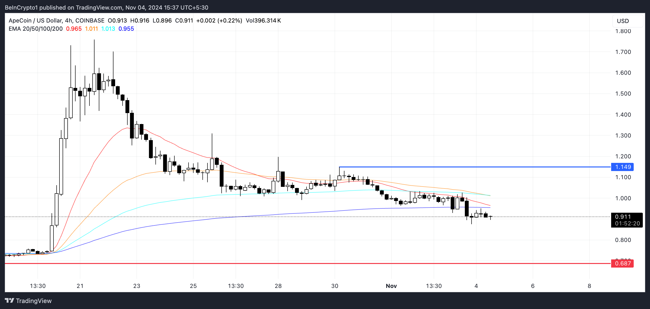 Öte yandan, eğer alış ilgisi ortaya çıkar ve trend tersine dönerse, APE 1,14 dolarlık direnci kırmayı deneyebilir, bu da potansiyel olarak %25’lik bir artış sunar. Bir sonraki hamlenin yönü, APE’nin mevcut desteği koruyup yeni alıcılar çekebilip çekemeyeceğine bağlı olacaktır.