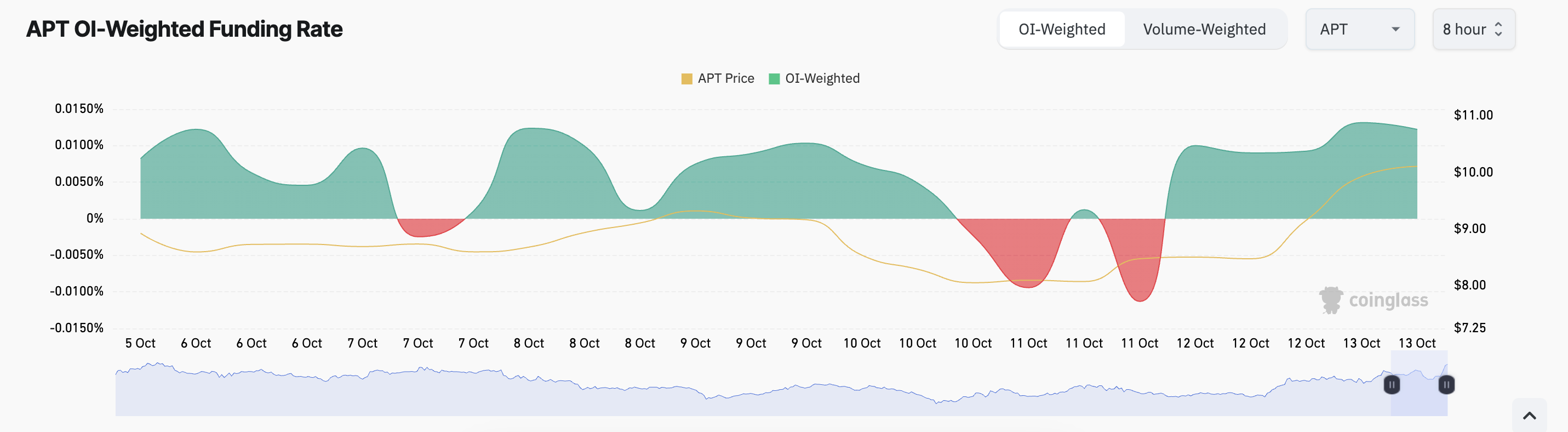 APT’nin fonlama oranına göre, birçok vadeli işlem trader’ı bu boğa stratejisiyle uyumlu. Şu anda, coin’in fonlama oranı pozitifte, %0,012. Bir varlığın fonlama oranı pozitif olduğunda, birçok trader fiyatın artmaya devam edeceğini bekler. Bu da uzun pozisyonlar için talebi artırır.