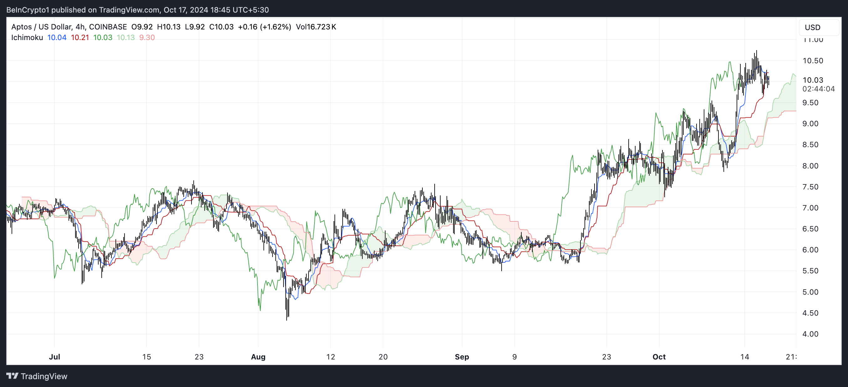 Ichimoku Bulutu Gösteriyor: Aptos’un Yükselişi Şimdilik Bitebilir