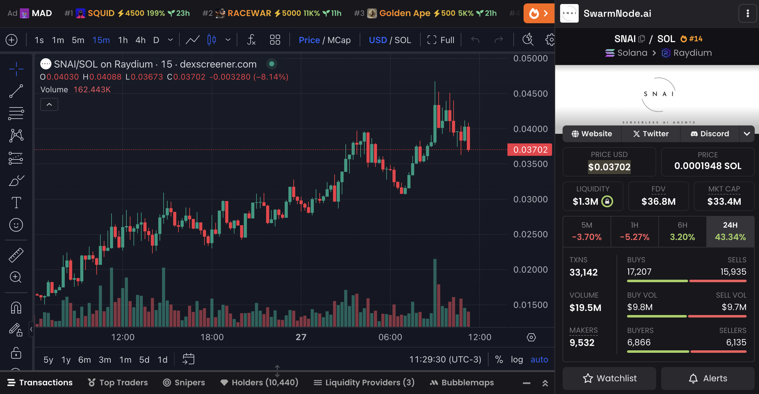 Neredeyse yedi gün önce piyasaya sürülen SNAI, 10.000’den fazla sahibine ulaştı. Günlük işlem hacmi 20 milyon dolara yaklaşıyor ve 33.000’den fazla işlem gerçekleştirildi.