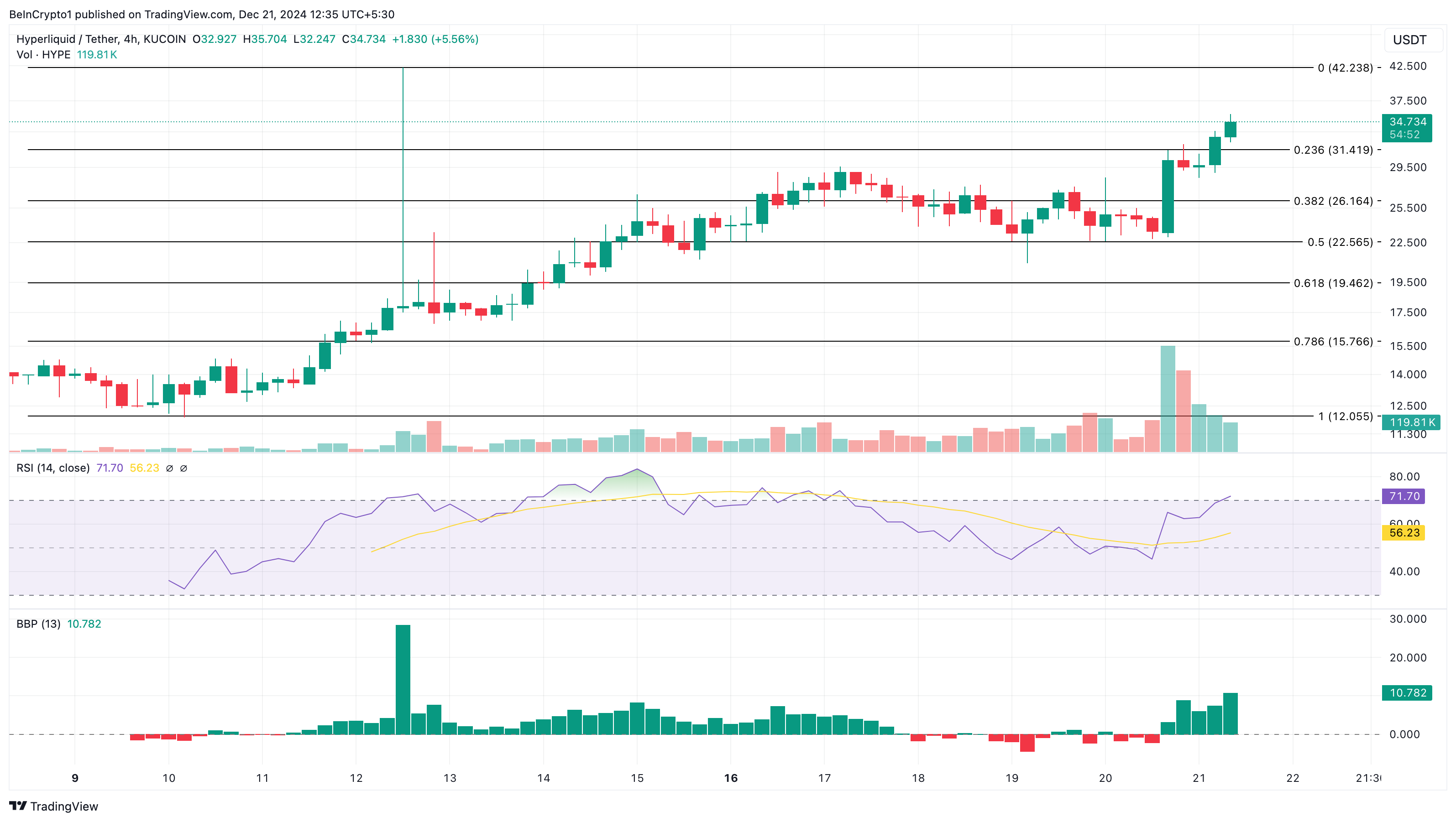 Ayrıca, Göreceli Güç Endeksi (RSI) okuması yükselmeye devam ediyor, bu da Hyperliquid token etrafındaki momentumun yükseliş eğiliminde olduğunu gösteriyor. Bu durum böyle devam ederse, HYPE’nin fiyatı kısa vadede 42,24 dolara yükselebilir.