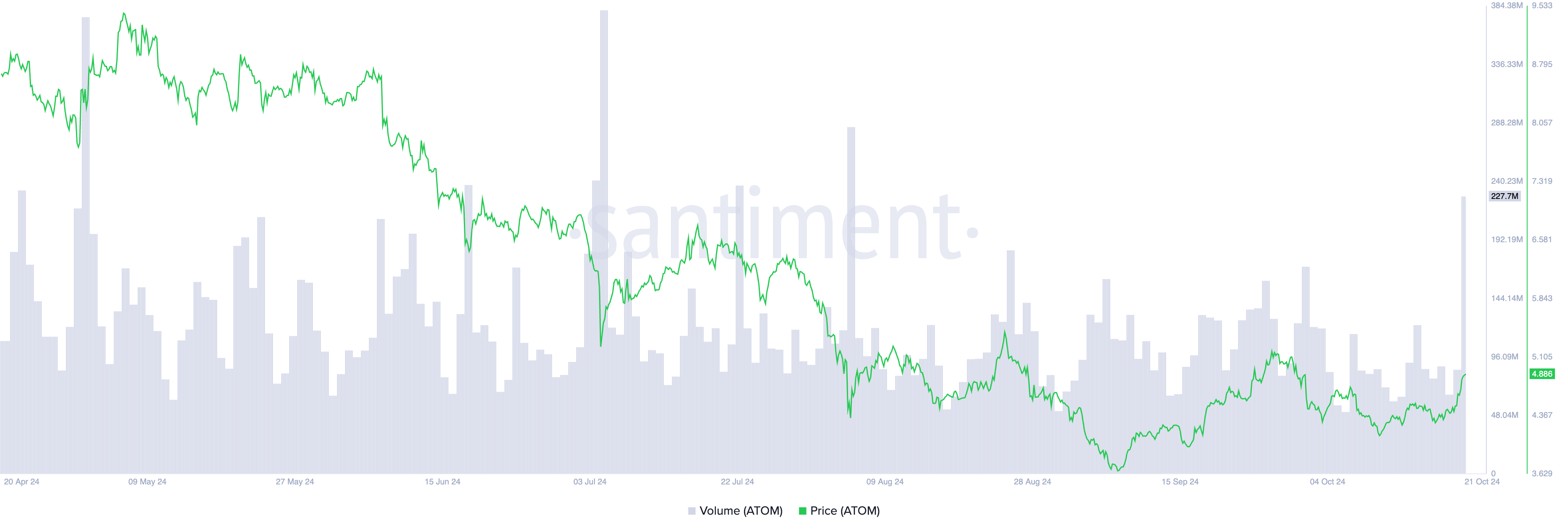 ATOM coin 4,86 dolardan işlem görüyor ve son 24 saatte %9’luk bir artış kaydetti. Bu süre zarfında işlem hacmi de iki ayın en yüksek seviyesi olan 228 milyon dolara ulaştı.