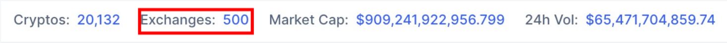 6 Temmuz itibarıyla, hizmet veren toplam borsa sayısının, önceki aylara göre kayıplar kaydederek 500’e gerilediği görüldü. Kripto para piyasalarına yönelik veri sağlayıcısı CoinMarketCap’in verilerine göre, 6 Haziran günü toplam borsa sayısı 525 adet olarak kaydedilmişti. Bu veri, sektörün 30 günde 25 borsa kaybettiğine işaret ediyor .