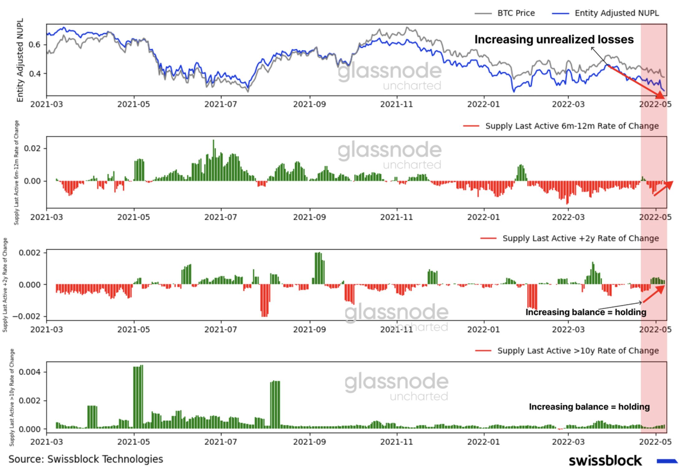 Glassnode makalesinde, makro ortamın faiz artışı gerektirdiği vurgulandı. Ancak raporda nakit akışına yönelik daha şahin hamlelerin bir durgunluk anlamına geleceği de ifade edildi. Analistler, yaklaşmakta olan FOMC toplantısının (15 Haziran) ardından %95 olasılıkla bir faiz artışı yaşanacağını ifade ediyor. Mevcut durumda olası sıkılaşma adımlarının fiyatlanmasından kaynaklı olarak BTC ve hisse senetlerinden çıkışlar yaşandığı düşünülüyor.