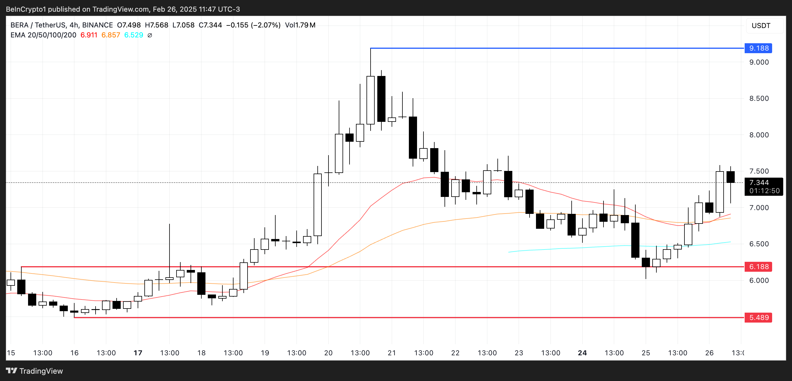 Ancak, yükseliş trendi hız kaybeder ve satış baskısı artarsa, BERA dün güçlü duran 6,18 Dolar’daki desteği yeniden test edebilir.