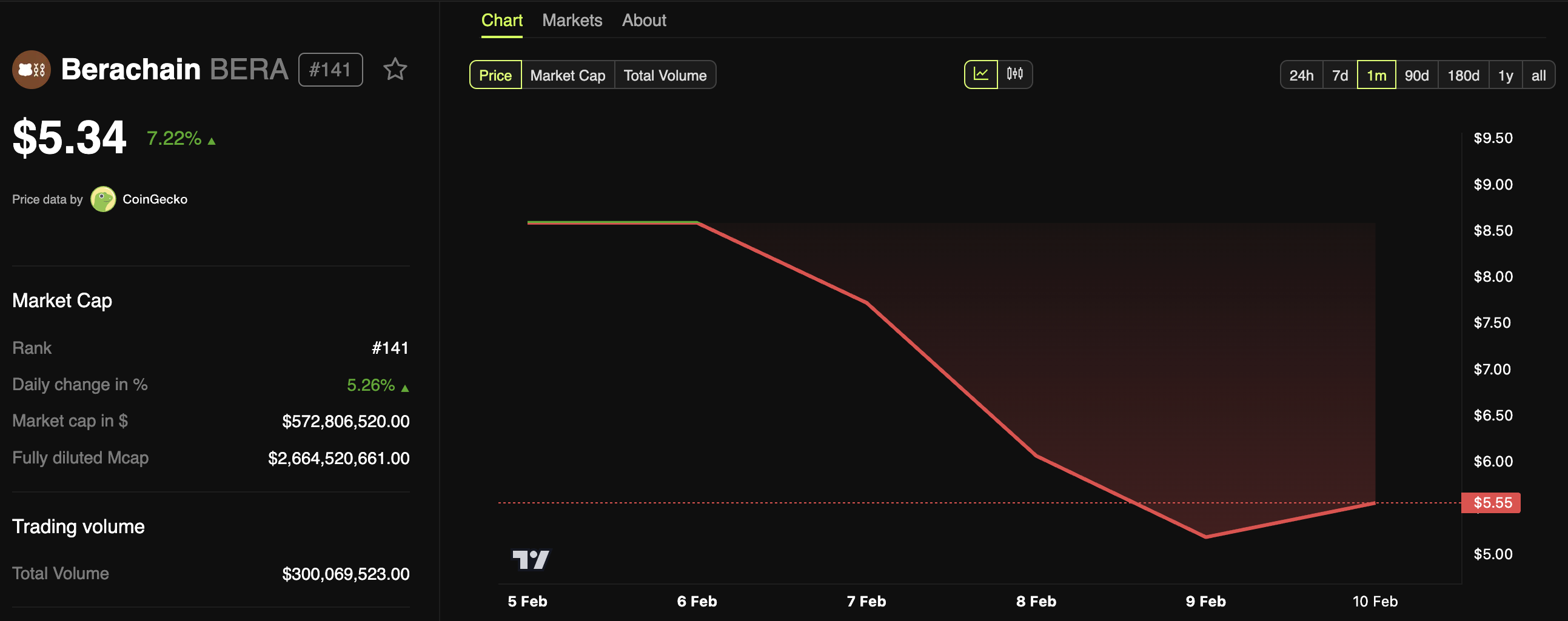 Airdrop gerçekleşir gerçekleşmez, BERA’nın fiyatı taş gibi düşmeye başladı. Airdrop sonrası gün içi zirvesinden %50’den fazla düştü ve ertesi gün de mücadele etmeye devam etti.
