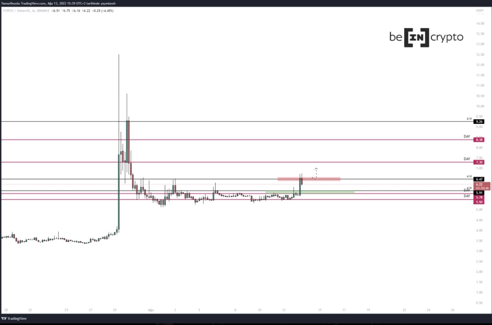 Ampleforth Governance Token son 24 saat içerisinde %20 yükselerek Binance’de listenen kripto para birimleri arasında en çok yükselen üçüncü altcoin oluyor. Gün içerisinde kuvvetli bir sıçarama gerçekleştiren FORTH coin 5,5 dolar seviyesinden 6,4 dolara kadar yükselmeyi başardı. Kripto para analisti Bayoğlu, 6,4 seviyesinin önemli olduğuna işaret ediyor:
