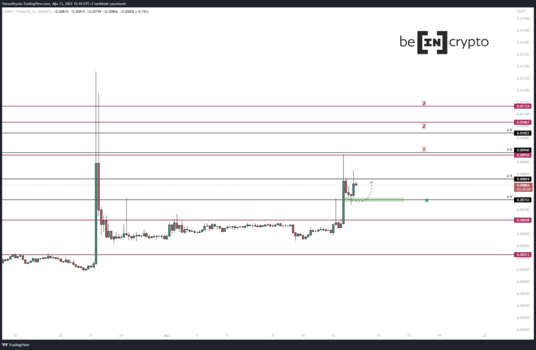Ooki Protocol son 24 saat içerisinde %30 yakın bir yükseliş göstererek Binance borsasının en çok yükselen ikinci kripto para birimi oluyor. Dün yükselişini başlatan OOKI oldukça volatil hareketler gösteriyor. Deneyimli analist Yağmur Bayoğlu projenin direnç bölgesinde hareket ettiğini bildiriyor: