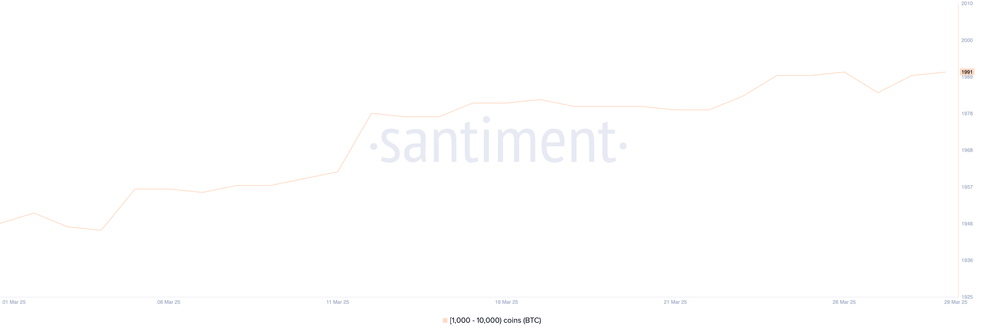 En az 1.000 BTC tutan cüzdanlar olan Bitcoin whale’lerinin sayısı son haftalarda istikrarlı bir şekilde artıyor. 22 Mart’ta 1.980 olan bu adres sayısı, o zamandan beri 1.991’e yükseldi.