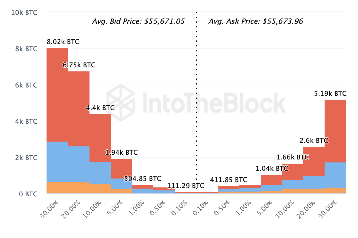 Ayrıca, piyasa katılımcılarının mevcut indirimli fiyatlardan BTC satın almak için sıraya girmiş gibi görünüyor. BeInCrypto, bu durumu Exchange On-chain Market Depth incelemesiyle keşfetti.