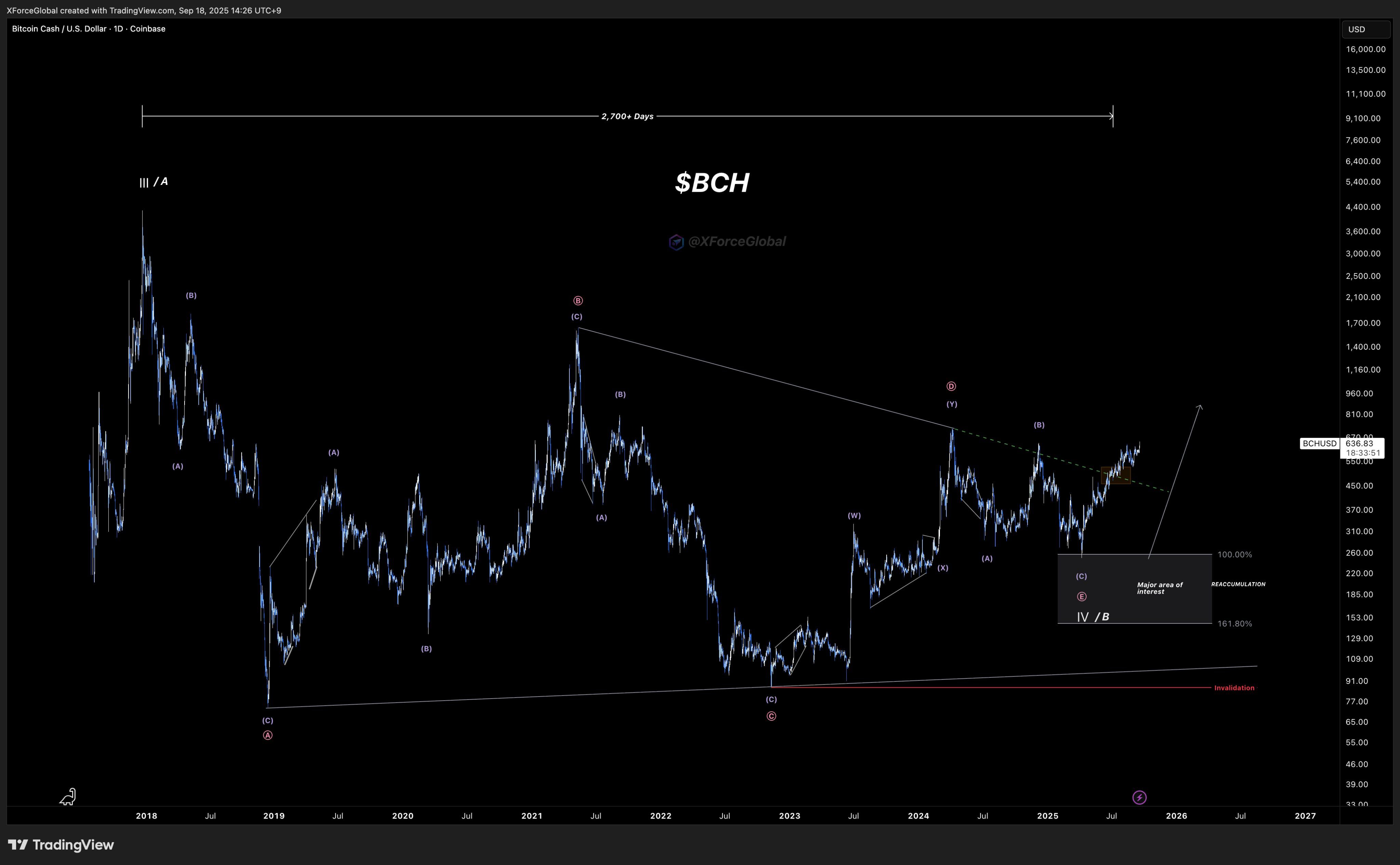 Teknik analistler, BCH’nin görünümü konusunda iyimser. Birçoğu, BCH’nin haftalık grafikte 2021’den beri süregelen bir simetrik üçgeni yeniden test ettiğini vurguluyor.