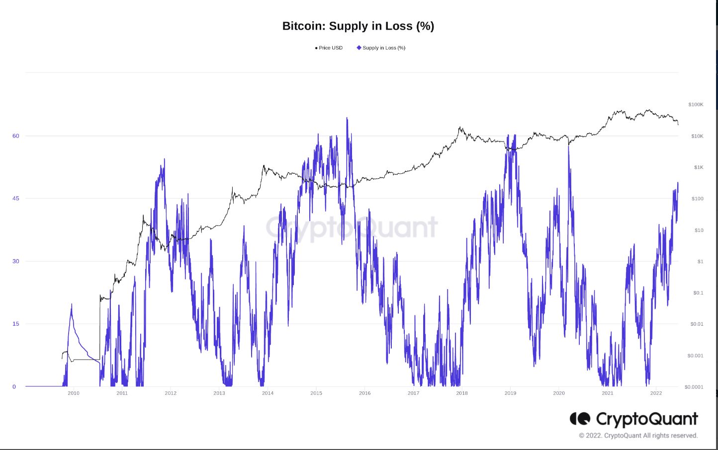 Ancak sanılanın aksine BTC yatırımcılarının yarısından çoğu hala kar durumunda. Zincir içi analitik platformu CryptoQuant, 16 Haziran itibariyle toplam BTC arzının sadece %46’sının zararda olduğunu bildiriyor. Kripto para analisti William Suberg, mevcut verilerin BTC için fiyat kapitülasyonuna işaret etmediğinin altını çiziyor.