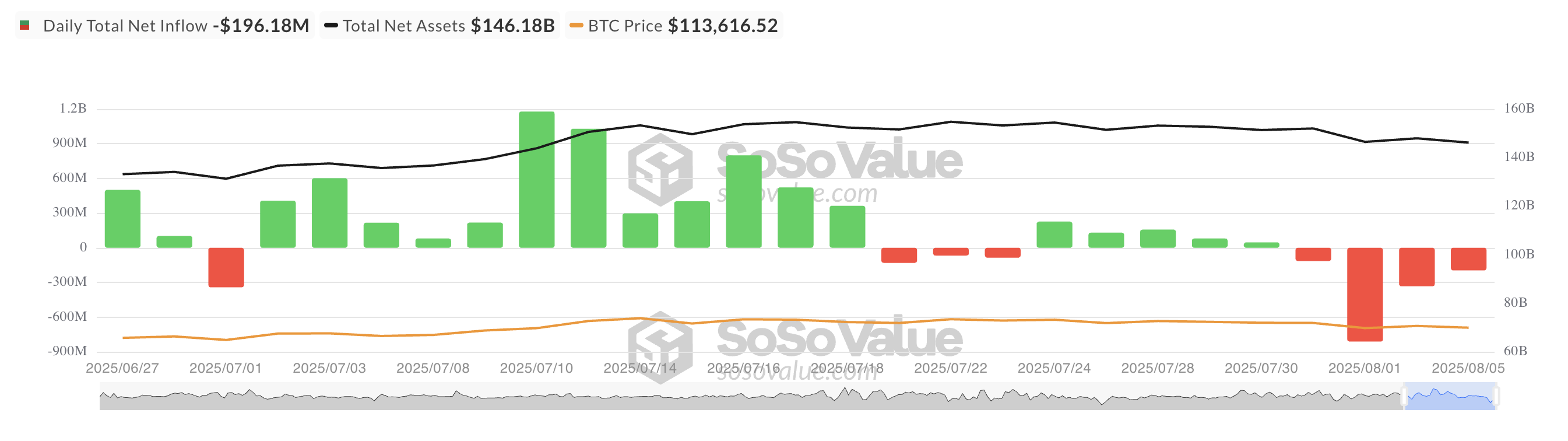 Sadece Temmuz ayında, spot BTC ETF’leri 6 milyar Dolar’dan fazla sermaye girişi sağladı ve fiyatların yükselmesine yardımcı oldu. Şimdi geri çekilmeleri, kurumsal desteğin eksikliğini gösteriyor ve bu değişim, kripto paranın değerini yakın vadede olumsuz etkileyebilir.