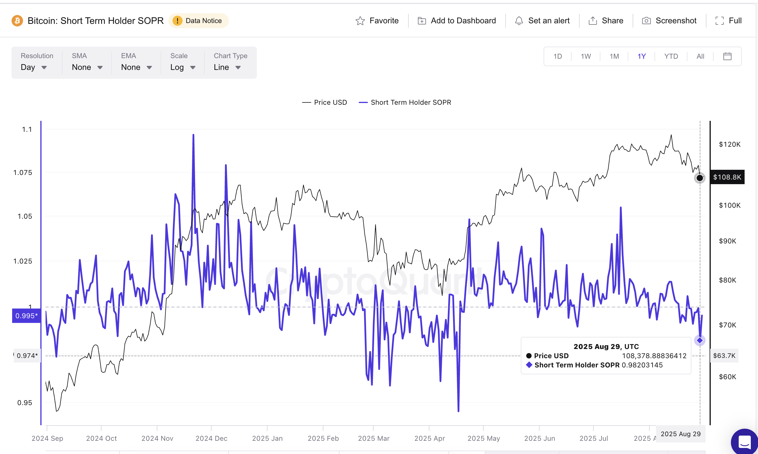 Bitcoin fiyatının son haftalarda düşmesiyle, kısa vadeli SOPR 29 Ağustos’ta 0,982’ye geriledi ve bu, aylardır görülen en düşük seviye. Bu durum, kısa vadeli yatırımcıların büyük bir kısmının zararla satış yaptığını, yani zayıf ellerin pes ettiğini gösteriyor.