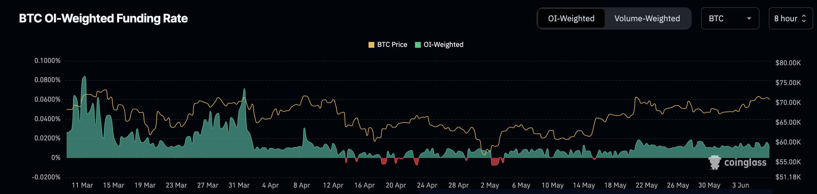 Negatif bir Fonlama Oranı, daha fazla trader’ın kısa pozisyonları tercih ettiği ve ayı piyasası görünümünü gösterir. Fonlama Oranı Ağustos’tan bu yana en yüksek seviyede kaldığı ve pozitif olduğu için, trader’ların Bitcoin’in fiyatının yükselişini beklediği, verilerin 75.000 dolarlık bir beklentiye işaret ettiği görülüyor.