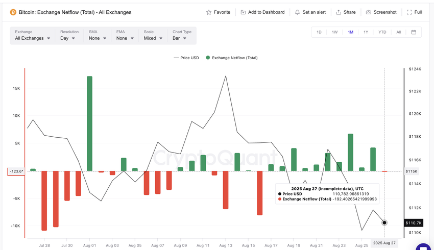 10 gün sonra ilk kez, tablo bugün biraz değişti. Net akışlar hafifçe kırmızıya döndü, –192 BTC. Bu durum, satıcıların nihayet kontrolü kaybetmeye başladığını, hatta sadece küçük bir farkla bile olsa, gösteriyor.