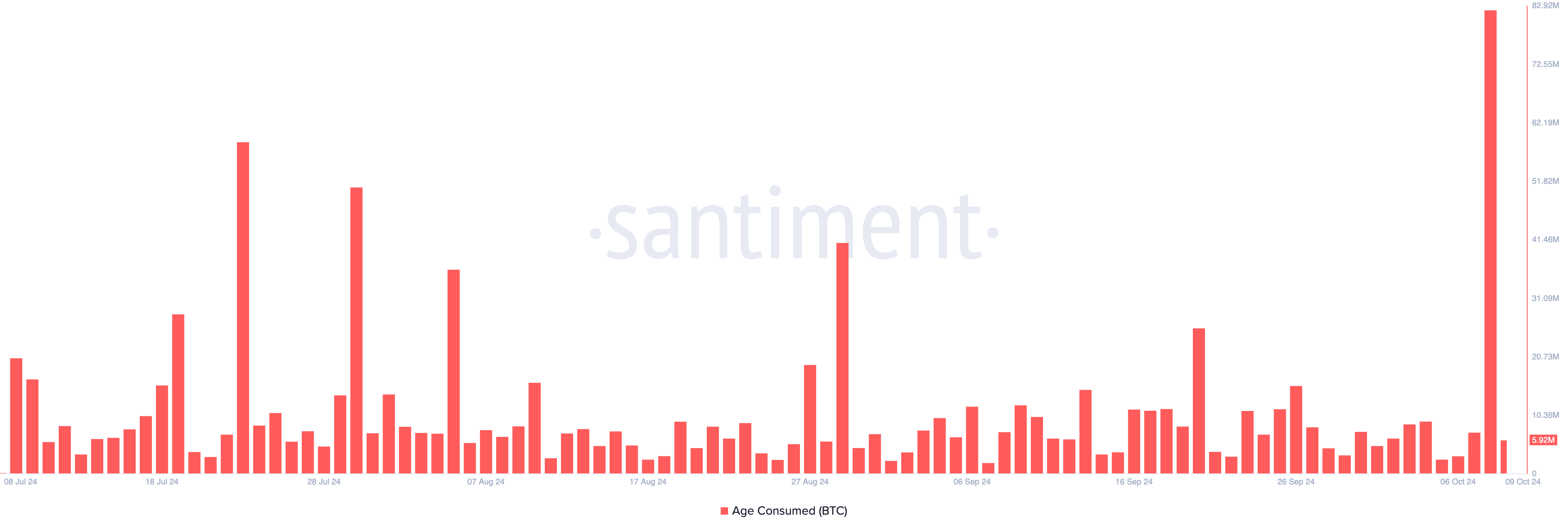 X platformundaki bir yazıda, Lookonchain, Çarşamba günü büyük bir Bitcoin balinasının altı aydır hareketsiz kaldıktan sonra lider kripto para borsası Binance’den 250 BTC çektiğini belirtti. Bu balina aktivitesi, uzun süre elde tutulan coin’lerin hareketini izleyen Bitcoin’in Yaş Tüketimi metriğinde keskin bir artışla çakıştı. O gün, metrik %1026 artarak 82.1 milyona ulaştı — son 90 gündeki en yüksek seviye.