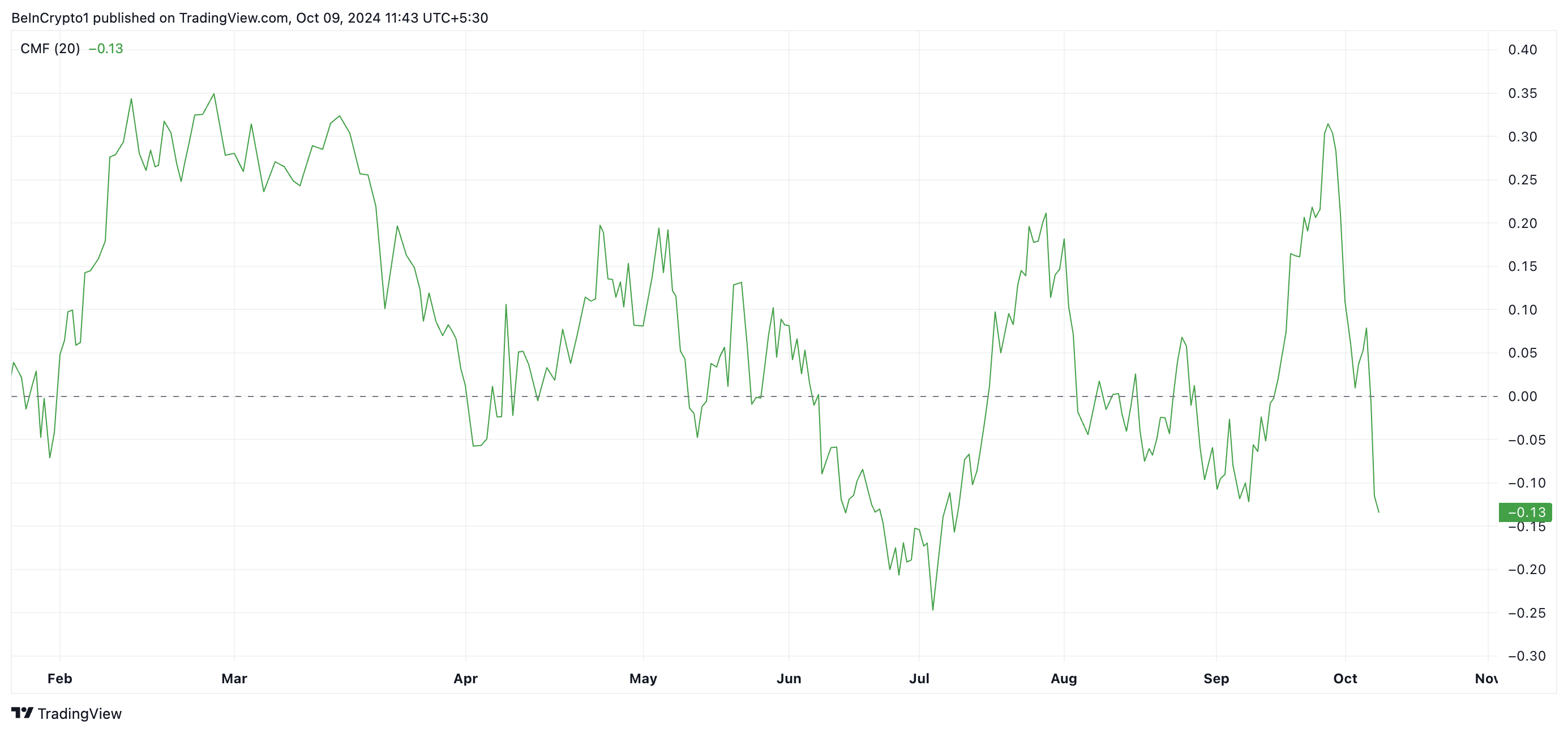Bitcoin’in düşen Chaikin Para Akışı (CMF), bu zayıf talebi vurgulamaktadır. Piyasaya ve piyasadan sermaye akışını izleyen CMF, şu anda sıfır çizgisinin altında, -0.13 değerinde. Bu, daha fazla trader’ın Bitcoin varlıklarını satışa çıkardığını ve ayı baskısını artırdığını öne sürüyor.