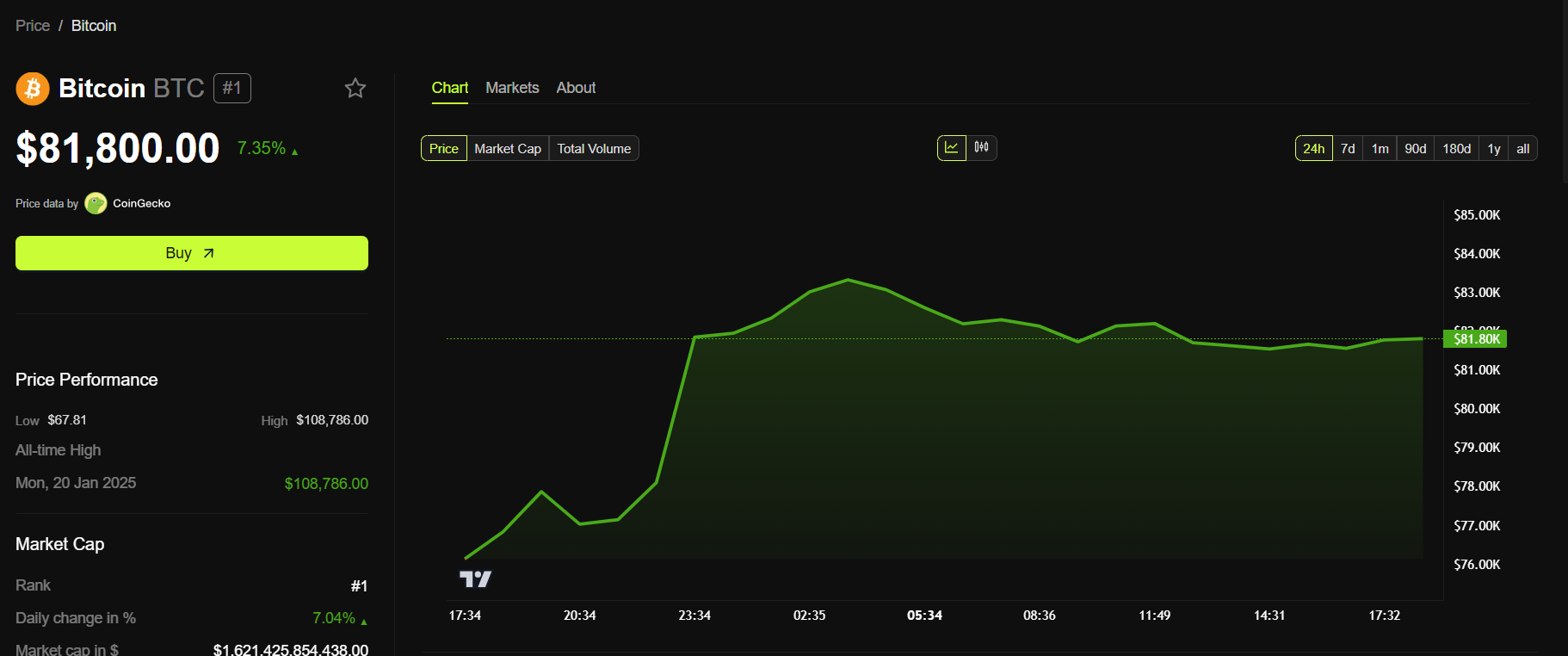 Tüketici Fiyat Endeksi (TÜFE), enflasyonu ölçen kritik bir ekonomik göstergedir. Tüketicilerin mal ve hizmetler için ödediği fiyatlardaki ortalama değişimi izler. Beklenenden düşük TÜFE rakamları Bitcoin’e ihtiyaç duyduğu itici gücü verebilir. Haber yayına hazırlandığında, Bitcoin 24 saatlik grafikte %7’den fazla artışla 81.800 Dolar’dan işlem görüyordu.